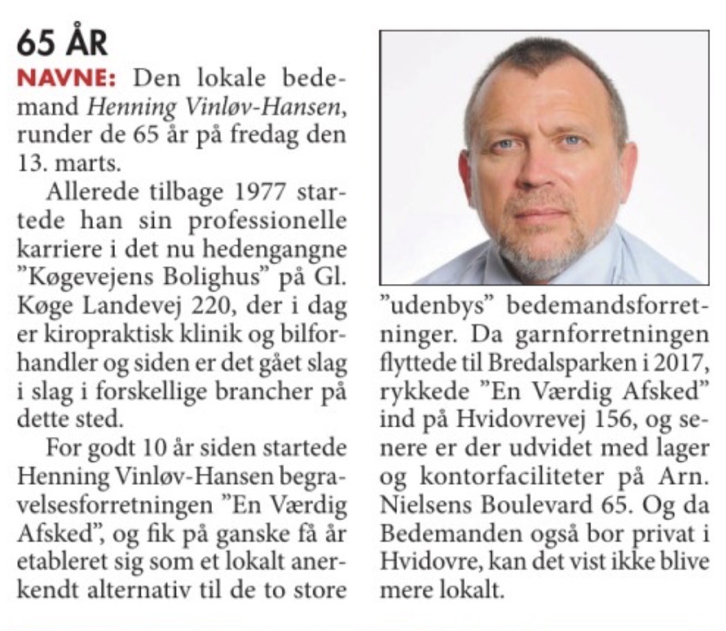 Artikel i Hvidovre Avis d. 11. marts 2026